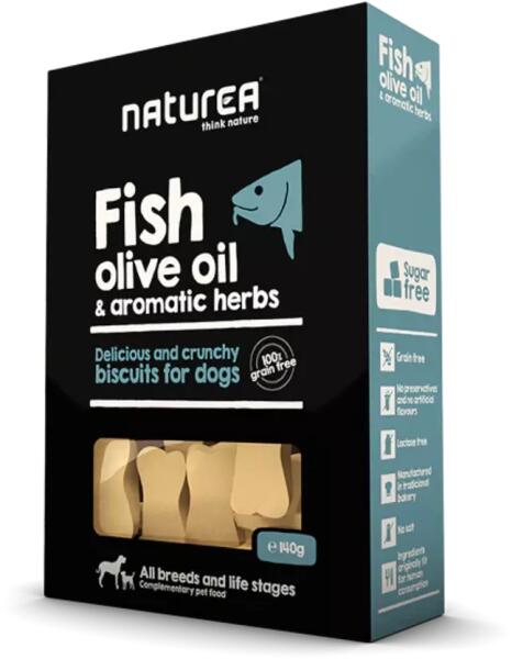 Ropogós keksz kutyusoknak a legjobb alapanyagokból. Hal és olívaolaj egy kevés finom fszerrel. Egy igazán mediterrán ízkombináció amelynek eredménye egy igazán ínycsiklandó jutalomfalat. A Naturea házi készítésű kekszek egy kis Portugál tengerparti városban, hagyományos receptúra alapján készülnek gondosan válogatott, egészséges összetevőkből . Ez a recept magában