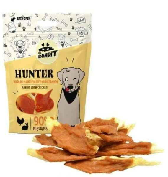 Mr. Bandit HUNTER nyúl és csirke 500 gMr. Bandit húsos falat az édes bajkeverőnek! Veszélyesen finom, minden kisállat szívét elrabolja! LeírásA finom és aromás csirkemellel töltött ropogós nyúlfül minden kutyus álma! A finomság sokáig tart és lehűti sok kutya bajkeverő vérmérsékletét. ÖsszetételCsirkemell 60%, nyúlfül 30%, mogyorófehérje, glicerin. Adalékanyagok: