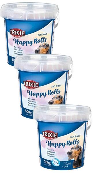 Trixie Soft Happy Rolls további jellemzői: puha jutalomfalat lazacos ízesítés nem tartalmaz hozzáadott cukrot praktikus, visszazárható csomagolásban