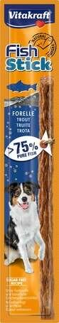 12g A Vitakraft Fish Stick pisztrángos jutalomfalat egy kiváló minőségű, ízletes halrúd kutyáknak pisztrángos ízben. Különösen vonzó, étvágygerjesztő pisztrángos illat. Felülmúlhatatlan íz, amit minden kutya imád. A kiváló minőséget a friss hús, és az aromatartó csomagolás garantálja. Minden alkalomra optimális, egészséges snack. Minimum 78.6% halat (amelyből mi
