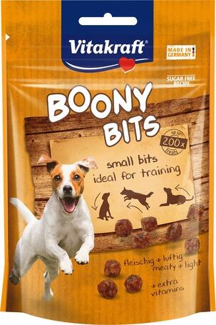 220g Vitakraft Boony Bits apró kis húsos falatkák egyedülállóan könnyűek. Ideális edzéshez mert nem zsíros és nem morzsálódik.