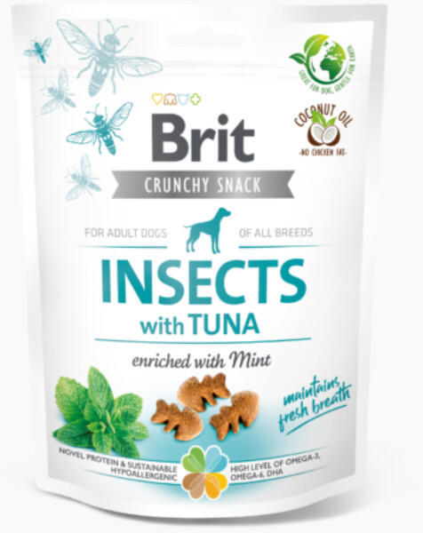 Ropogós csemege rovarokkal és tonhallal, m entával dúsítva. Hatékony kiegészítő állateledel kutyák számára. Friss lehelletet biztosít Egészséges és ízletes jutalom Rovarfehérje – remekül emészthető, allergiás reakció kockázata alacsony Magas arányú zsírsav-tartalom az egészséges bőrhöz és fényes szőrzethez Újrahasznosítható csomagolás, alacsony ökológiai