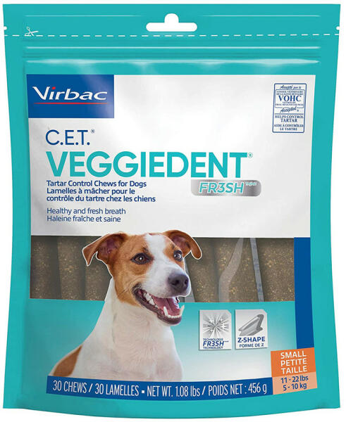 A VEGGIEDENT ®FR3SHrágószalagok a kutyák rossz szájszagának megel ő zésére és a megfelel őszájhigiénia fenntartására lettek kifejlesztve. A rágoszalag csökkenti a lepedék- képződést napi egyszei alkalmazás esetén. Egyedülálló Z-forma, hogy elérjen minden fogfelszínt. Olyan prebiotikumot tartalmaz, amelyről ismert, hogy támogatja a megfelelő emésztést. Tisztít: a s
