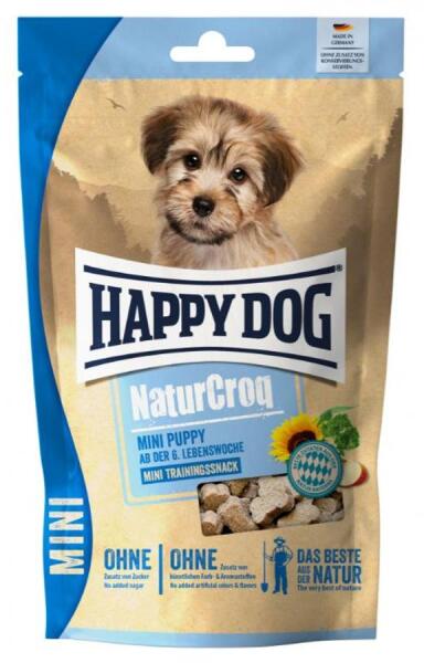 Happy Dog NaturCroq Mini Puppy 100g - Finom Jutalomfalat Kölyök Kutyáknak A Happy Dog NaturCroq Mini Puppy egy finom, puha, csont alakú jutalomfalat , kifejezetten 10 kg felnőttkori súlyig tartó kistestű kölyökkutyák számára. Ez a természetes , bajor alapanyagokból készült csemege ideális a kis kutyák számára, akiknek kiegyensúlyozott étrendre van szükségük, és az emész