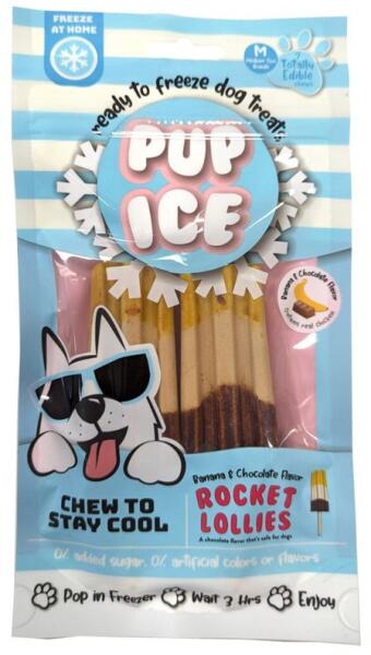 A Pup Ice egy egyedülálló, finom és hűsítő finomság, amelyet arra terveztek, hogy lehűtse kutyáját a forró nyári napokon. A Pup Ice egy szilárd finomság, amelyet otthon fagyasztva fogyaszthat. Nem kell aggódnia a rendetlenség, a kiömlés vagy a csöpögés miatt. A terméket úgy állították össze, hogy a kutya nyelve nem ragad rá, mint egy hagyományos fagyasztott finomság