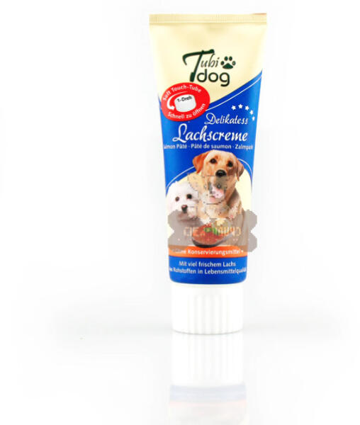 A magas minőségű TubiDog lazac krémmel most könnyű jutalmazást adni vagy a gyógyszert "elrejteni". A krém sok friss lazacból készül, és nemcsak minden kutyának igazi finomság. A lazacban található magas omega-3 tartalom egészségmegőrző hatással is bír. A lazacban található omega-3 zsírsavak, az EPA és a DHA esszenciálisak (azaz a kutyák nem tudják saját maguk előál