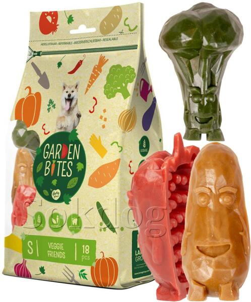 Ízletes édesburgonyás fogtisztító és jutalomfalat paprikás, zöldborsós és brokkolis ízesítéssel. Gluténmentes, könnyen emészthetõ természetes zöldség összetevõkbõl, allergiás kutyáknak is.