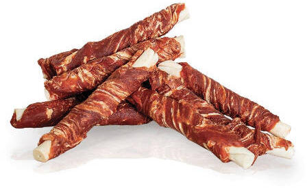 Magas kollagén és fehérje tartalmú ropogós "takarmány kiegészítő" jutalomfalat, amely támogatja a porcok és ízületek egészségét. Kiválóan tisztítja a fogakat és erősíti a rágóizmokat. Különleges eljárással szárított és enyhén füstölt jutalomfalat minden méretű és korosztályú kutya részére.