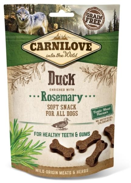 Ízletes puha kacsás snack érzékeny kutyák részére, rozmaringgal az egészséges fogakért és ínyért. Összetétel: 35% szárított kacsa, sárga borsó, folyékony növényi keményítő, kacsamártás, baromfihús mártás, kollagén, 1% rozmaring, lazacolaj Analitikai összetevők: nyersfehérje 32,0% zsírtartalom 6,0% nedvesség 17,0% nyers hamu 7,0% nyersrost 1,0% kalcium 1,2% foszf