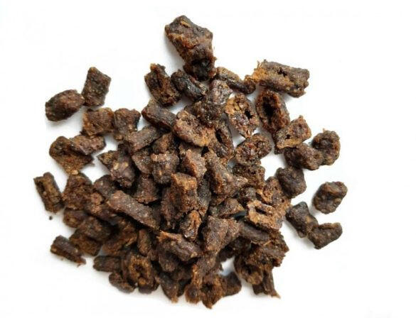 Ízletes snack tréninghez, gyors jutalmazáshoz. Kicsi falatok (kb. 1-1,5 cm), nem zsíroz, így könnyedén behelyezhető a zsebbe a képzés alatt. Közepesen kemény, 100%-ban természetes és minden adalékanyagtól mentes. Összetevők: 85% lóhús, 13,8% rizs, 0,6% szarvasagancsliszt, 0,2% cikóriarostok, 0,2% lazacolaj, ásványi anyag. Összetevők: Nyersfehérje: 23%, Nyerszsír: 8%, Nye