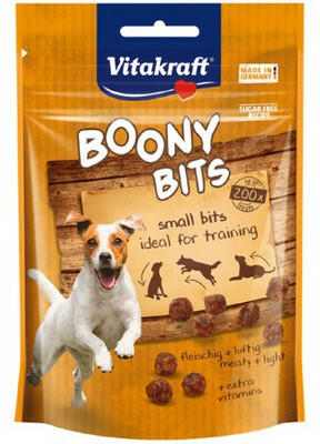 Apró falatkák extra vitaminokkal kis és közepes kutyák részére. Ideális jutalomfalat kültéri aktivitáshoz, tréninghez, tanuláshoz, mert nem zsíros és nem morzsálódik. Praktikus, újrazárható tasakban. Összetétel: Hús és állati melléktermékek 51,1% (sertés, baromfi, marha), gabonafélék (búza), növényi melléktermékek, élesztők. Analitikai összetevők: Nedvesség