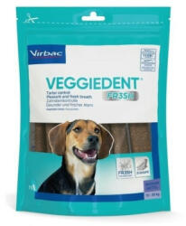 A VEGGIEDENT ®FR3SHrágószalagok a kutyák rossz szájszagának megel ő zésére és a megfelel őszájhigiénia fenntartására lettek kifejlesztve. A rágoszalag csökkenti a lepedék- képződést napi egyszei alkalmazás esetén. Egyedülálló Z-forma, hogy elérjen minden fogfelszínt. Olyan prebiotikumot tartalmaz, amelyről ismert, hogy támogatja a megfelelő emésztést. Tisztít: a s