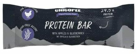 A CHICOPEE PROTEIN BAR egy egészséges és tápláló protein szelet, amely kifejezetten azoknak a kutyáknak készült, akik szeretnének energiát és tápanyagokat bevinni. A szelet magas fehérje tartalmának köszönhetően ideális választás az aktív életmódot folytató kutyáknak. 35.5% fehérje tartalommal, 84% friss csirkével, gabonamentes. Összetétel: friss csirkehús (64%), fri