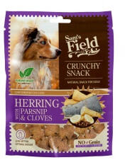 A Sam's Field Crunchy Snack - Herring with Parsnip & Cloves egy kiegészítő állateledel kutyák számára herinngel, paszternákkal és szegfűszeggel. A Sam's Field Crunchy Snack - Herring with Parsnip & Cloves egy kiegészítő állateledel kutyák számára herinngel, paszternákkal és szegfűszeggel. Összetevők : Szárított hering (35%), borsó (35%), burgonya (15%), szárított