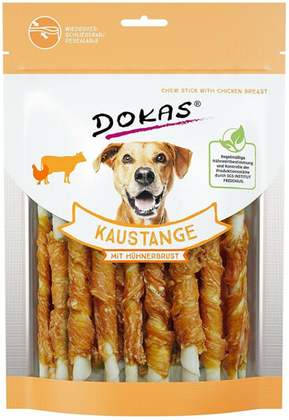DOKAS rágórúd szárított csirkemellel 200g Egészséges rágcsálnivaló kutyák számára . Visszazárható tasakban. Marhabőr betekerve csirkehússal. Remek rágcsálnivaló. Összetétel: marhabor 55%, csirkemell 42%, növényi melléktermékek, ásványi anyagok Analitikai összetevők nyersfehérje 81%, nyerszsírok 4,3%, nyershamu 3,2%, nyersrost 0,5% nedvességtartalom 15%.