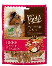 A Sam's Field Crunchy Snack - Beef with Apples & Carrot egy kiegészítő állateledel kutyák számára marhával, almával és sárgarépával. A Sam's Field Crunchy Snack - Beef with Apples & Carrot egy kiegészítő állateledel kutyák számára marhával, almával és sárgarépával. Összetevők : Szárított marhahús (35%), borsó (35%), burgonya (13%), baromfizsír (7%), szárí