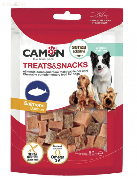 Ízletes lazacos kockák - Glutén, és adalékanyagoktól mentes Omega 3-6 tartalmazó étrendkiegészítő jutalomfalat kutyák számára. Nettó 80 gramm Összetétel: lazac 88,5% lazac, kukoricakeményítő, glicerin, szorbit, só. Felhasználás: 4 hónapnál fiatalabb kutyák számára nem ajánlott. Ajánlott napi fogyasztási mennyiség: 1-20 db (1db 1,5g), az eb mérete alapján határozz