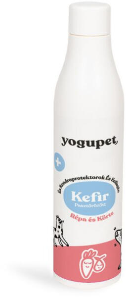 A Yogupet Kefir palettáját pasztőrözött, laktózmentes kefirek alkotják fagyasztva szárított gyümölcsökkel/zöldségekkel és funkcionális összetevőkkel felturbózva. Ennek a kefirnek a szupererejét a benne található sárgarépa és körte adja. Az ízületek védelméért került a termékbe kollagén, glükózamin és kondroprotektorok is. A sárgarépa foszforban és rostban ga