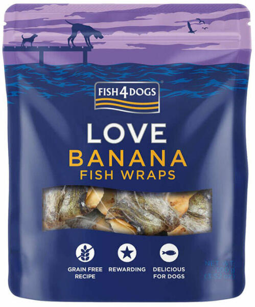 Halas tekercsek banánnal kiváló csemegék a kutyabarátok számára. Finom gyümölcs és hal kombinációja. Készülnek vékony banánszeletekből ropogós halbőrbe tekerve. A csemegék finomak és ropogósak, és nagyszerű ízkombinációt alkotnak. Jellemzők: Gluténmentes Finomak, ropogósak Összetevők: banán (62%), fehér hal bőre (38%) Analitikai összetevők: nyersfehérje 25%, r
