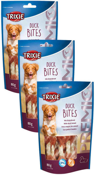 Trixie Premio Kacsás Csontok további jellemzői: kacsahú sból készült, fehérjében gazdag jutalomfalat. 59% hústartalom gluténmentes nem tartalmaz hozzáadott cukrot visszazárható csomagolásban