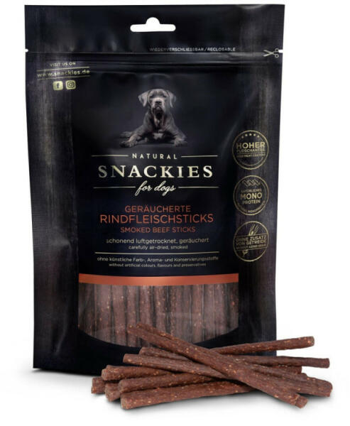 Kiadós, puha marhahús stickek fenyőfán finoman füstölve, alacsony zsírtartalommal, hozzáadott mesterséges színezékek, ízek vagy tartósítószerek nélkül, hozzáadott cukor vagy gabona nélkül. Puha állagának köszönhetően ideális idősebb kutyák és kölykök számára is. Ezek a rágcsálnivalók finom ízűek, és könnyen emészthetők, ideálisak egy kis csemegézéshez a