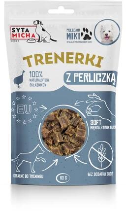 A Syta Micha gyöngytyúkkal készült tréningfalat kiváló forrása az olyan könnyen emészthető fehérjének, amely nem terheli meg a kutyák gyomrát. A hús kalciumot, magnéziumot, szilíciumot, vasat, cinket és rezet is tartalmaz, amelyek elengedhetetlenek az immunitás fenntartásához, valamint az idegrendszer és az emésztőrendszer megfelelő működéséhez. A gyöngytyúk sovány