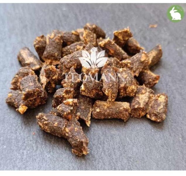 Kiegészítő táp, jutalomfalat kutyák számára Magas hústartalom - Kizárólag sovány hús és kiváló minőségű belsőségek. Gránátalma magok - Gazdag vitaminokban, ásványi anyagokban, zsírsavakban, nagy arányban bioaktív természetes antioxidánsokban. gabona és hozzáadott cukor nélkül Célunk, hogy a kutyák és macskák számára fajnak megfelelő és természetorientált
