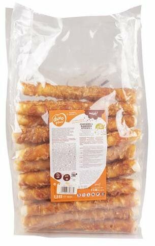 Rágó jutalomfalat kutyáknak. Összetevők: hús és húsipari melléktermékek (57% csirkehús, 38% marhabőr), növényi melléktermékek, fehérjekivonat, ásványi anyagok. Analitikai összetevők: nyersfehérje 60%, nyerszsírok és-olajok 1%, nyersrostok 2%, nyershamu 4%, nedvesség 17%. Mindig biztosítson kutyájának tiszta, friss ivóvizet. Mindig ügyeljen kedvencére, amíg a csemeg