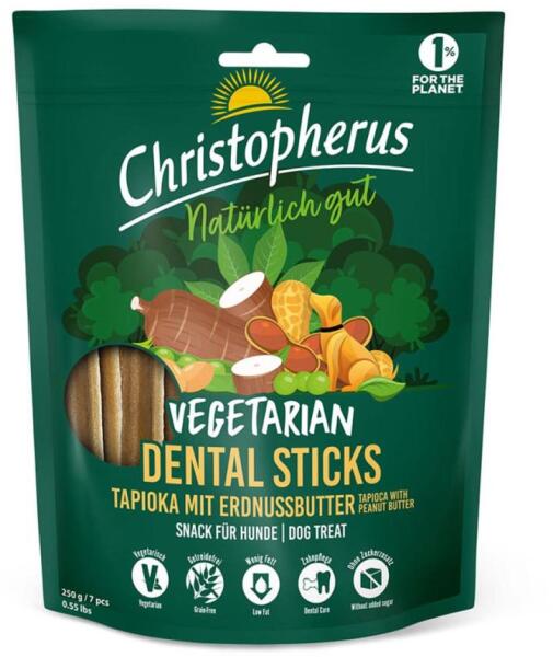 Muszáj húst enni a fogmosáshoz? Úgy gondoljuk, hogy nem, és vegetáriánus fogápoló terméket kínálunk kutyájának a Christopherus vegetáriánus fogápolónkkal, földimogyoróvajas tápiókával. Christopherus vegetáriánus fogpálcáink javíthatják kutyája fogai egészségét azáltal, hogy formát és konzisztenciát biztosítanak az íny és a fogak támogatásához, valamint me