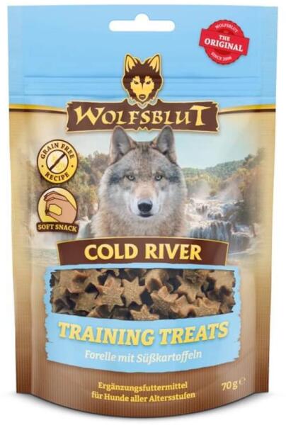 Wolfsblut Cold River Training Treats jutalomfalat ínycsiklandozó pisztránggal és édesburgonyával kutyusok számára tréningezéshez. Puha és finom falatok ideális választás tréning során jutalmazásként vagy nassolnivalóként a főétkezések között. Minden korú és méretű kutyusnak ajánlott. Természetes alapanyagokból álló receptúra, mely könnyen emészthető csemegét