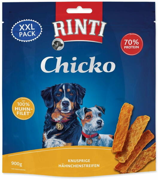 A zooplus. hu kínálatából: A RINTI Chicko Csirke 97%-ban értékes csirkehúsból, húsliszt hozzáadása nélkül készül. A filéket gondosan szárítják a levegőn, így nem csak különösen ízletes, hanem könnyen emészthető is. A RINTI Chicko filék igazi ropogós húskülönlegeségek. Viszazárható tasakjának köszönhetően sokáig friss marad. A rágócsíkok nem tartalmaznak