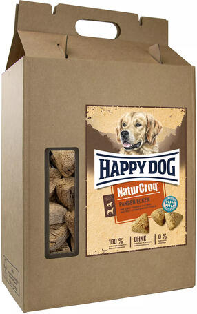 10kg A Happy Dog Pansen-Ecke egy teljes kiőrlésű gabonából készült sült kutyakeksz értékes zöld gyomorral, ásványi anyagokkal és búzacsírával. A kutyakekszek rágcsálása tisztítja a kutyák fogait és friss leheletet biztosít.