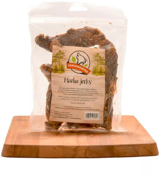 100% marhahús, vékony szeletekre vágva, megszárítva, ideális étkezések között egy kis kiegészítésnek, vagy csak egy kis kényeztetésnek a mindennapokban. Igazi természetes jutalomfalat , csökkenti a fogkőképződést , és közben le is köti a kutyust unalmas óráiban. A kíméletes, alacsony hőmérsékleten történő szárításnak köszönhetően jól megtartja vitamin és