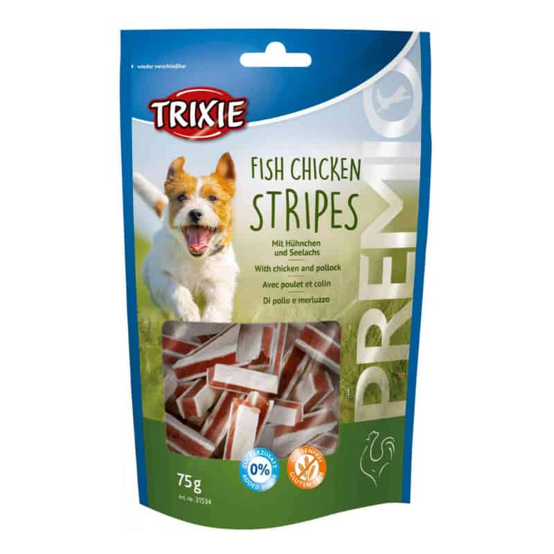 Trixie Jutalomfalat Premio Fish Chicken Rolls Szárított csirkehúsból és halból készült jutalomfalat kutyáknak. Ízfokozók, aromák, színezékek, tartósítószer nélkül! Kiszerelés: 75g Szárított csirkehúsból és halból készült jutalomfalat kutyáknak. Ízfokozók, aromák, színezékek, tartósítószer nélkül! Kiszerelés: 75g
