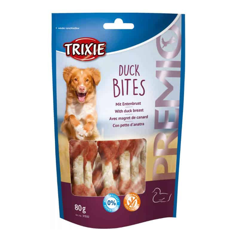 Trixie Jutalomfalat Premio Duck Bites TRIXIE PREMIO DUCK BITES Bőrcsontok szárított kacsahússal betekerve, Hústartalom: 59%, Ízfokozók, aromák, színezékek, tartósítószer nélkül! TRIXIE PREMIO DUCK BITES Bőrcsontok szárított kacsahússal betekerve, Hústartalom: 59%, Ízfokozók, aromák, színezékek, tartósítószer nélkül! Kiszerelés: 80g