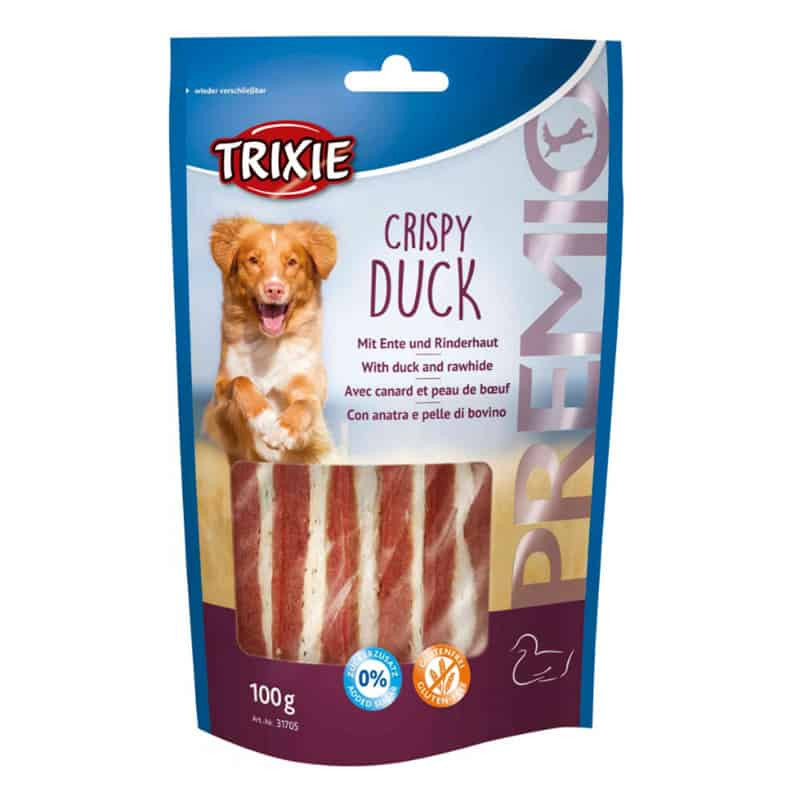 Trixie Jutalomfalat Premio Crispy Duck Trixie PREMIO Crispy Duck ropogós kacsa húsból készült jutalomfalat. Trixie PREMIO Crispy Duck ropogós kacsa húsból készült jutalomfalat. Kiszerelés: 100g