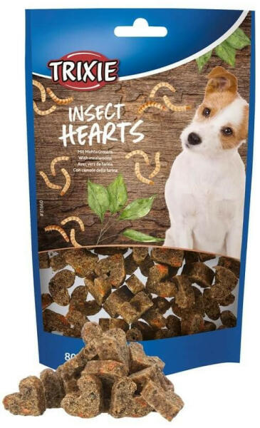Kutyacsemege, melynek egyetlen fehérjeforrása a lisztkukac. A rovarok különösen alkalmasak ételallergiás kutyák számára. A finomságokat édes kis szíveknek tervezték, és kisebb darabokra törhetők, hogy alkalmazkodjanak kutyájához. A rovarszívek 80 grammos, visszazárható tasakban kaphatók. A finomságokat édes kis szíveknek tervezték, és kisebb darabokra törhetők, hogy a