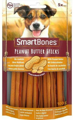 Összetevők : növényi termékek, hús és állati származékok (beleértve a csirkemellet 8,6%), különböző cukrok, diófélék (4,1% földimogyoró), ásványi anyagok, zöldségek (0,6% szárított sárgarépa, borsó, édesburgonya)A Smart Bones mogyoróvajas rúd kielégíti kutyája természetes rágási ösztöneit, és ízletes hús és földimogyoró egyedi kombinációjával gyakor