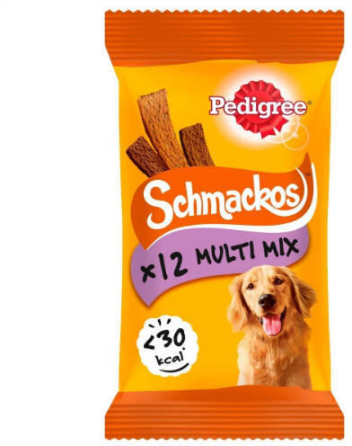 A kutyák szeretik a hús ízét – az omlós és fenséges ízűPedigree Schmackos Multi jutalomfalatízekben gazdag porhanyós csík, amiért minden kutya odavan. Adagolhatja egészben vagy kisebb darabokban, a kutyája mindenképpen azt fogja kapni, amit a legjobban szeret. A Schmackos kutya jutalomfalat hozzáadott omega-3-zsírsavakkal és mesterséges színezékanyagok vagy aromák nélkül