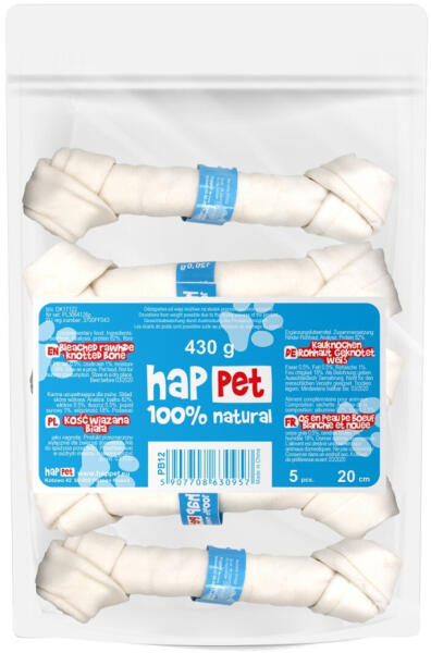 Hosszúság: 20 cm Összetétel: szárított marhabőr. Analitikai összetevők: fehérje 82% rost 0,5% zsír 0,5% nyershamu 1% nedvesség 18%. Nyersbőr csomózott csont / Natural Kutyáknak A Happet csontok egy speciális masszából készülnek, amelyet túlsütött marhabőrből készítenek, majd megszárítják és valódi csont alakúra préselik. Ezeknek az eljárásoknak köszönhetően a