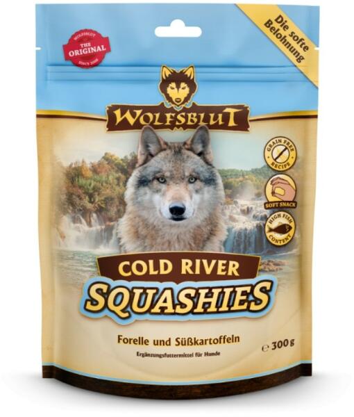 A Wolfsblut Squashies puha, gabonamentes kutyafalatok, amelyek tökéletesek jutalomnak vagy edzésnek. Puha állaguk miatt könnyen rághatóak. Wolfsblut Cold River Squashies falatkák: Puha állagú harapnivalók, tökéletesek számos edzési célra, vagy jutalomként az étkezések között, hosszas rágás nélkül Természetes összetevőket tartalmazó formula A recept fő összetevője a