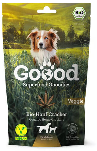 A bio kendert tartalmazó prebiotikus szuperélelmiszer-kekszek 100%-ban vegánok. Nem tartalmaznak hozzáadott cukrot, színezéket, aromát vagy tartósítószert. A bio kekszek ezért érzékeny kutyák számára is alkalmasak. Állaguknak köszönhetően a foghigiéniát is elősegítik. Összetétel: Kenderliszt* (16%), teljes kiőrlésű tönkölyliszt*, zabpehely*, alma*/** (8%), sárgarép
