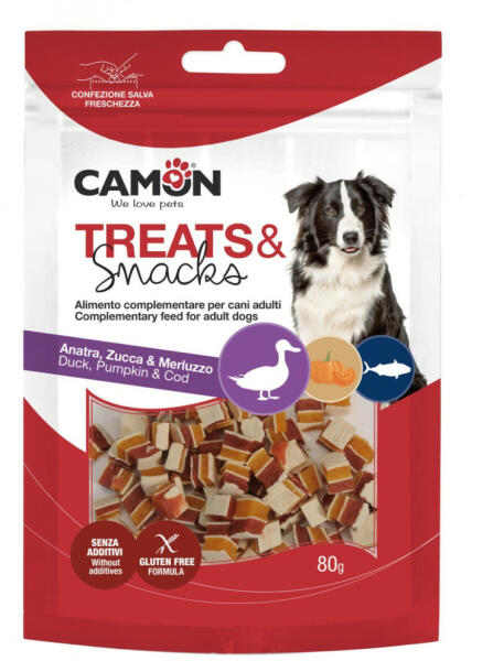 Kacsás, tőkehalas szendvics sütőtökkel- Étrendkiegészítő felnőtt kutyák részére. Glutén és adalékanyag mentes. ÖSSZETÉTEL: kacsahús 52%, friss gyümölcs és zöldség feldolgozásából származó termékek ésmelléktermékek (tök) 37%, hal (tőkehal) 8%, szója (mag) fehérjekoncentrátum, burgonyakeményítő, glicerin (zöldség) ), szorbit, nátrium-klorid - ANALITIKAI Ö