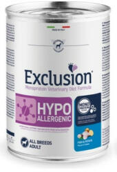 Hipoallergén, gabonamentes konzerv, táplálék-intoleranciával küzdő, felnőtt kutyák részére. Monoprotein, egyetlen fehérjeforrás a hal. Az Exclusion Diet Hypoallergenic Fish and Potato all breed , egy kiváló minőségű, válogatott fehérjékből és szénhidrátokból összeállított kutyaeledel. Eleségallergiával vagy étel-intoleranciával küzdő, felnőtt kutyák számára.