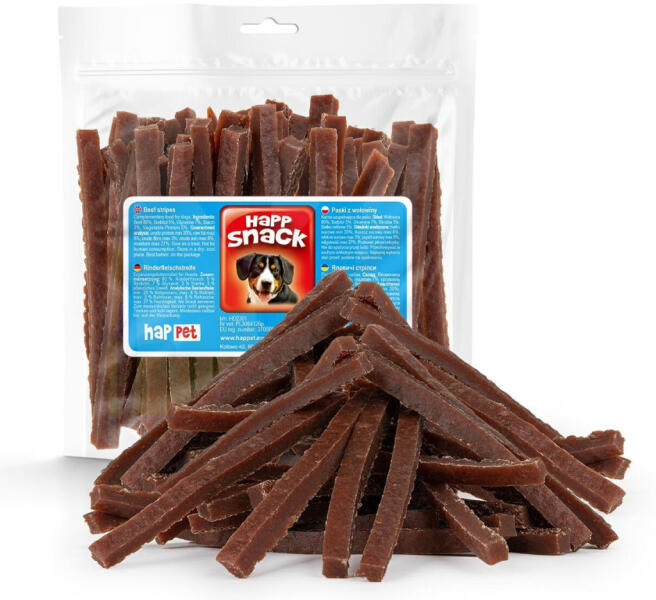 Kutyája imádni fogja a húscsíkokat egyedi ízük miatt. A kiváló minőségű természetes összetevők használata ízletessé és egészségessé teszi a csemegét. Az ízletes húscsíkok kiváló lehetőséget nyújtanak kutyája étrendjének változatosabbá tételére és kiegészítésére. A csemege jó jutalom játék, edzés vagy sétálás közben. Adhatja kutyájának állatorvos
