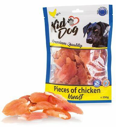 KIDDOG csirkemell darabok 250 g, Csirkemell darabokmotivációs jutalomfalat vagy jutalom az állatnak könnyen kisebb darabokra vágható vonzó illat és íz összetevők: csirkehús (89%), növényi fehérje, növényi glicerin, keményítő, szorbit súly: 250 g
