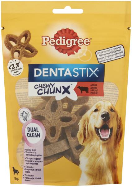 Pedigree Denta Stix Chewy ChunX Maxi marha 15kg+ 68g - Ízletes kutyasnack a kutyák fogápolásának támogatására. Nassolás és fogápolás egyszerre? A Pedigree Dentastix Chewy ChunX kutyasnackkel ez nem gond! Ezek a jóízű jutalomfalatkák nemcsak ízletesek, hanem kutyája fogápolásához is hozzájárulnak. A Dentastix Chewy ChunX speciális összetétele biztosítja, hogy négylábú