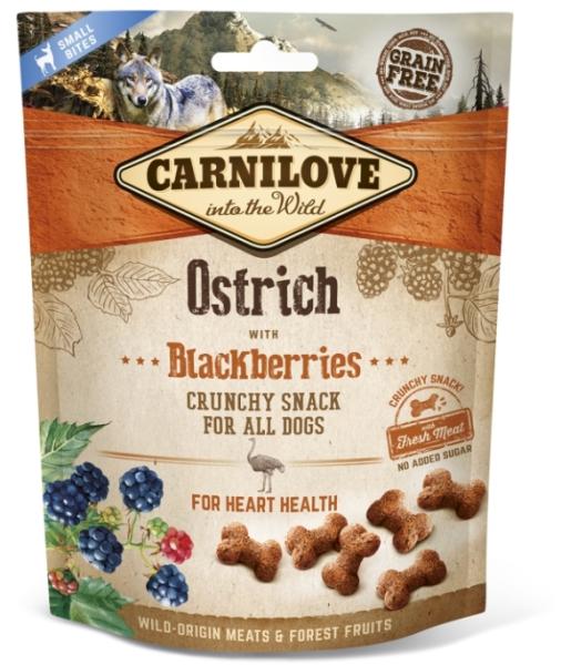 Ízletes ropogós strucchúsos snack kutyák részére, szederrel a szív egészsége érdekében. Összetétel: szabadtartású strucc 50% (szárított strucc 33%, friss strucc 17%), sütőtök 15%, sárgaborsó 8%, szárított alma 5%, sárgarépa 5%, csicseriborsó 4%, szeder 4%, csirkehús (tokoferollal tartósítva) 4%, lenmag 2%, szárított spenót 2%, lenolaj 1%. Analitikai összetevők: n