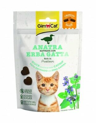 A GimCat ropogós snackjei értékes fehérjeforrások, valamint gyümölcsök és gyógynövények tökéletes kombinációját kínálják, amelyek minden ínyencet meggyőznek! A recept teljesen mentes a gabonaféléktől, a mesterséges színezékektől és az ízektől. Összetétel : Hús és származékai (kacsafehérje 38,8%), zöldségek, növényi eredetű melléktermékek, olajok és zs