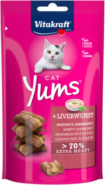 Kiadós májkolbásszal egyedülálló eljárással állítják elő – a legjobb alapanyagokból, cukor, gabona és szója hozzáadása nélkül. Mitől olyan különleges: minden harapnivalót finoman töltenek és kíméletesen sütnek a sütőben . Ettől nem csak ellenállhatatlanul finom, hanem beleharapva lédús is. A macskája imádni fogja ezeket a húsos falatokat! Zamatos macskafalato
